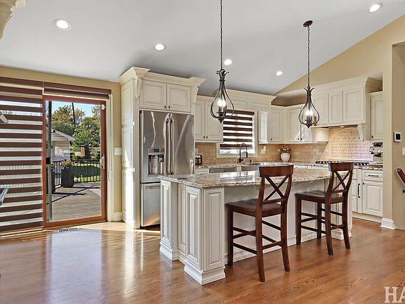 Welcome to 540 W. Center Street in Itasca, an exceptional four-level split home that blends high-end luxury with thoughtful design in the coveted Lake Park High School District. From the moment you step inside, you're greeted by a dramatic 11-foot vaulted ceiling and an open-concept kitchen and dining area that sets the tone for the entire home. The custom kitchen (remodeled in 2018) features marble countertops, abundant cabinetry, premium stainless steel appliances, and elegant lighting that transitions seamlessly from task to mood. Upstairs, you'll find three generously sized bedrooms and a spa-inspired Euro-style bathroom with suspended sink, exquisite tilework, and top-tier finishes. The lower level offers a cozy retreat with a stone electric fireplace, hardwood flooring, and a second luxury bath showcasing a walk-in shower, heated floors, and designer fixtures (Remodeled 2024). A spacious laundry room with backyard access adds convenience and functionality. Descend one more level to discover a fully finished family room and a flexible space perfect for a home office or fourth bedroom. With updates including windows (2016), roof (2021), sump pump (2016), and water heater (2017), this home is as solid as it is stylish. Step outside to a backyard built for entertaining: a massive fenced yard, a 44x21 Trex terrace, a built-in outdoor grill, a Weber smoker, and a charming gazebo (complete with fan, heater, and electricity) create an inviting outdoor oasis. The oversized driveway accommodates additional vehicles alongside a 2.5-car detached garage and shed. Located minutes from top-rated schools, Metra, expressways, shopping, and nightlife, this rare gem offers a lifestyle of comfort, convenience, and elevated living.