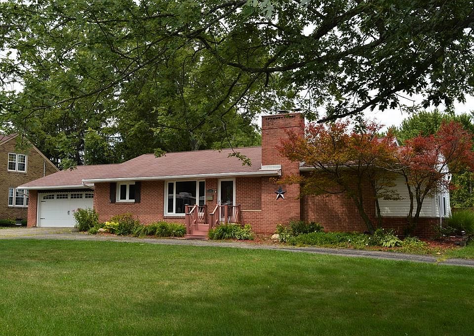Sprawling Brick Ranch on the edge of Woodland. Beautiful curb appeal with a crescent-shaped driveway. 3-4 bedrooms and 2.5 baths with 1424 square feet. Bright three-season sunroom with vinyl windows. Spacious open living room with fireplace and built-in cabinetry. Applianced eat-in kitchen. Formal dining room. Partially finished basement with rec room, wet bar, fourth bedroom, and full bath. Tons of storage. Pull down ladder in the attached garage for easy access to the attic. Maintenance-free front deck and a pretty front door. Open rear deck. Beautiful trees and shrubbery. Easy access to 13/71. Shown by appointment only.