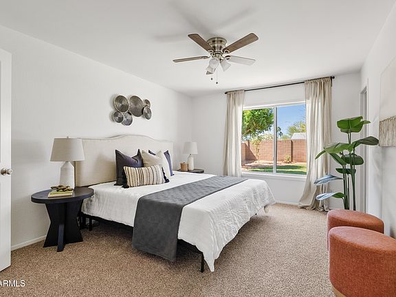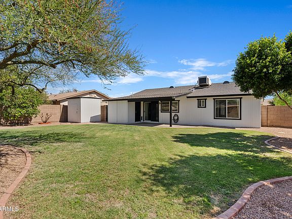 Pride of Ownership That Shows! This updated 3 bedroom, 2 bathroom Tempe home has no HOA and features brand new carpet in the bedrooms, updated Kitchen & Baths, 2 car garage, fresh interior and exterior paint, mature citrus and apple trees, and large detached storage shed in the backyard. The South facing yard features a mature Jacaranda tree that produces beautiful purple flowers and provides shade to the front of the home. As you enter, you will find a spacious living room with recessed lighting and warm redwood flooring. The kitchen is spacious with SS appliances, white cabinets, and granite countertops. Both bathrooms have been updated with tile surrounds and the primary bath  features a large shower. All bedrooms have brand new carpet installed in May of 2025 and there are new window coverings throughout. The peaceful backyard features a large covered patio, mature trees to include Lemon, Tangelo Orange, and Pink Lady tree that produces the best apples! Other features include upgraded dual pane windows, ceiling fans in all rooms, 2 car garage with epoxy floors and built in storage, large detached storage shed, massive indoor laundry room, corner lot, and much more! This home is located near the I10 and 60 freeways and is close to shopping, dining, and ASU's main campus. This home has been meticulously maintained with pride of ownership that shows!