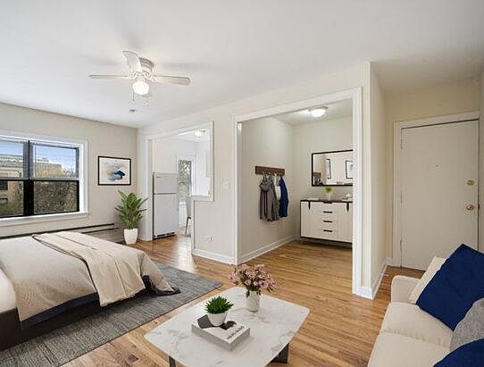 Studio apartments in this building offer hardwood floors throughout, lots of natural light, and great living space.