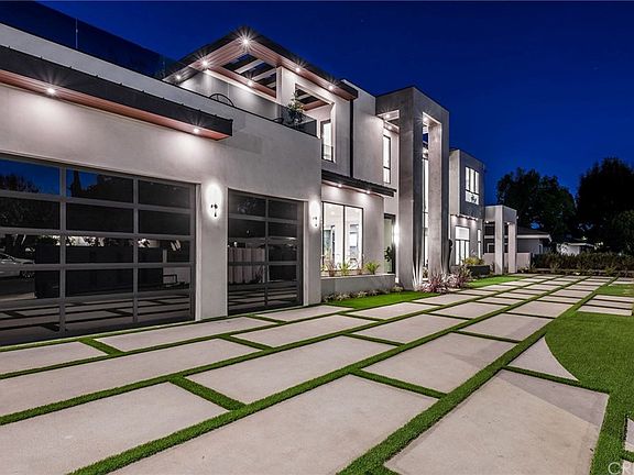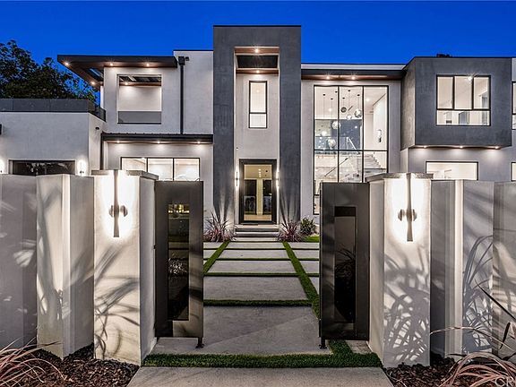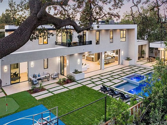 Introducing an Extraordinary Modern Luxury Estate perfectly encompassing the epitome of luxury and comfort set in the coveted Amestoy Estates of Encino. Immaculate open floor plan living blends with high end finishes throughout. This 2020 New Construction custom build extends 8,000 sqft of sophisticated design. The open floor plan allows for seamless flow from elegant dining room with glass walls into showcases designer Chef's kitchen equipped with top of the line appliances, custom glass cabinetry, large center island drops to a breakfast bar, office with separate entrance, en-suite Guest. As you enter to the second level you will be greeted by outdoor seating w/ fireplace. Inspiring master suite offers an oversized balcony overlooking to the backyard, spacious master closet w/ custom cabinetry. Resort-like master bath featuring large walk-in showers, double vanity, soaking tub. Additional 3 en-suites with private balcony. Basement level encapsulates entertainment at its finest with a theater room, game room w/serving bar, yoga room, dry sauna, gym, second powder room and guest bedroom. Floor to ceiling pocket doors lead to the captivating backyard including a sparkling pool & spa, BBQ area with bar, sport court, putting green and pool house with outdoor shower. You control this private and gates estate with one touch as smart home tech Impressive frontage with a driveway equipped to fit up to fifteen vehicles. Rare opportunity to own a home of this caliber!