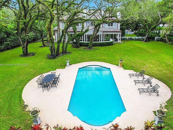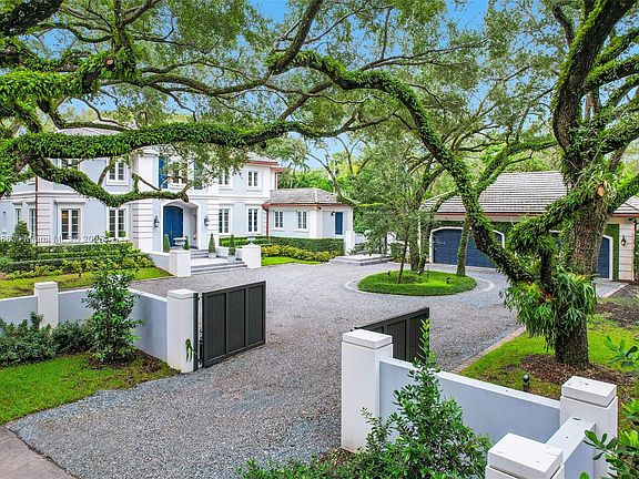 Stately Neoclassical-inspired residence on a cul-de-sac in the gated enclave of Banyan Drive. Towering oaks frame the property, evoking timeless European elegance & serene bond with nature. Ideally located within walking distance of West Matheson Park. Inside, a walnut-floored foyer opens to light-filled living spaces. Chef's kitchen boasts Wolf 6-burner gas range, Miele ovens, coffee system, dishwasher, plus Sub-Zero refrigeration, ice maker, & wine cooler - renovated in 2019 along with the family room. Features include intricate millwork, walnut & marble floors, downstairs suite & office, expansive terrace, & whole-house generator. Impact windows/doors (2019), 4 newer AC units, & oversized laundry offer peace of mind. Upstairs: 4 en-suite bedrooms plus a flex room for a playroom or gym.