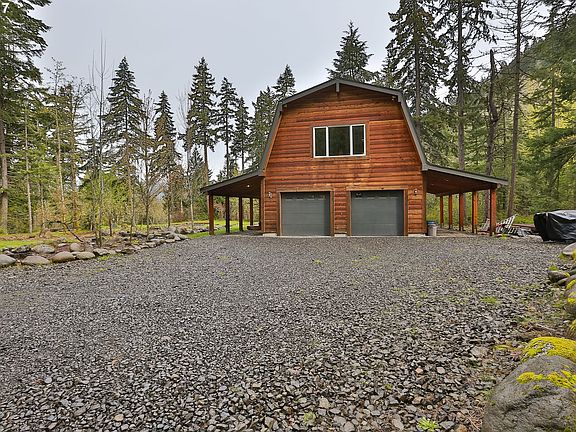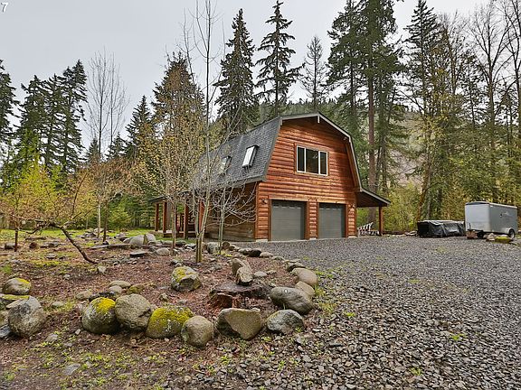 Riverfront acreage at the confluence of the Hood River and Trout Creek. Unique 2.63 acres off of Dee Hwy. Private and level property perched above the Hood River. Mountain modern interior with rustic NW barn exterior. Timbers and trim milled from fir trees on site. Garage, carport, and storage space. Custom built to offer a riverfront or mountain getaway. Owners have plans for a main house build out. Rare and unique retreat!