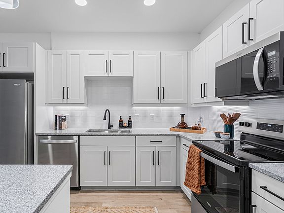 - Exterior features: Attached Garages, Custom Cabinetry, Custom Lighting, Flooring: Wood, Rent adj -$50, Stainless Steel Appliances, TV Lounge, Two Designer Color Schemes To Choose From, Walking Path