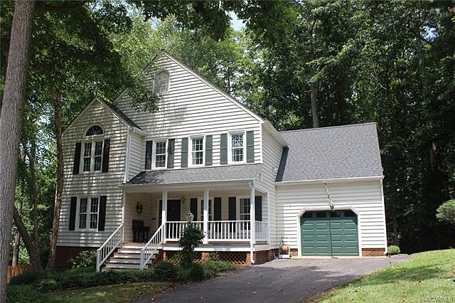Updated home includes upgraded woodwork, wood floors in foyer, living, dining & family rooms, all new carpet & padding. Eat-in kitchen includes granite counter tops & tile floor. Open family room has vaulted ceiling, skylights, fireplace, door to deck. Spacious master bedroom with vaulted ceiling, 2 walk-in closets, master bath, double vanity and linen closet. Nice size bedrooms with plenty of closet & storage space. Extras include, central vac, 4-sides irrigation, cul-de-sac lot, paved driveway, lovely front porch, 2 rear decks, hot tub included. Vinyl siding, double hung vinyl windows & newer roof. Subdivision built around 1700 acre lake, walking trails & playgrounds sprinkled throughout. Outdoor pools included in homeowner's dues. Indoor pool, tennis & fitness rooms require additional membership. Seller will pay for wood floors to be refinished after closing by Howdyshell Flooring. HMS Home Warranty included.