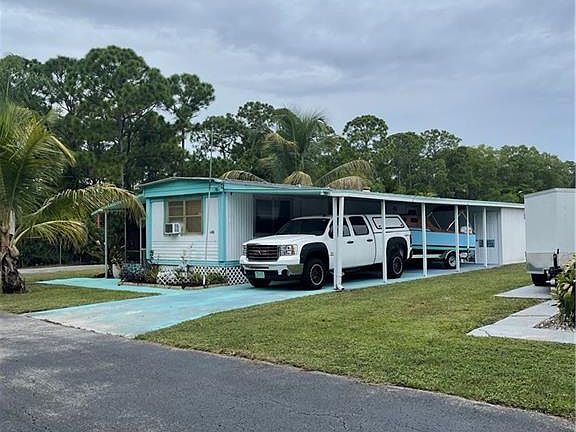 Private corner property, best lot in this 55+ Co-op mobile home community, Needs some TLC or replace with a brand new mobile home. Low monthly fees (187.00) includes water, sewer and trash removal, Landscaping, Security camera's. Mobile home comes fully furnished, This one also comes with Land, (co-op share value approximately 55,000.) Two car carport with nice size storage shed, washer and dryer included, within walking distance to shopping, Within minutes to Intracoastal waters with Kayaking , 7 minutes to beautiful Hobe Sound beach. Affordable Martin County Living!