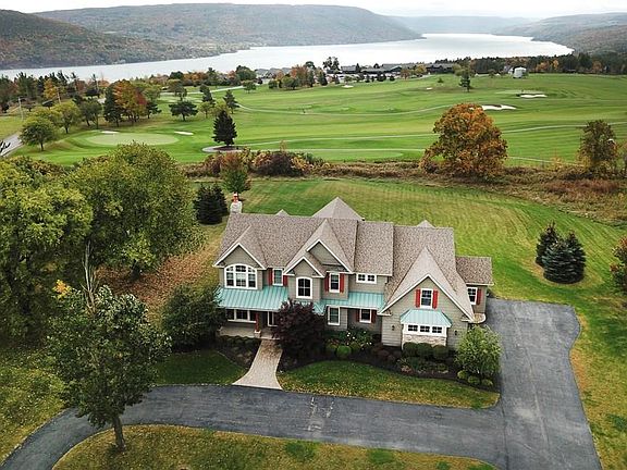 This is a 10 yr. old, Ketmar built home with 4,632 sq. ft. of luxury on 4.5 acres which enjoys a spectacular Southern Lake View and overlooks the Bristol Harbour Village Golf Course. This is a superior location only 10 miles from Canandaigua, a short drive to Bristol Mountain skiing and all of the benefits of such close proximity to Canandaigua Lake. This delightful home offers a natural flow between the Living, Dining, Kitchen and Family rooms. There is a first floor office, large pantry, mud room, numerous fireplaces, patio, three car garage (attached) as well as a very large master suite with lake views, his and her, walk in closets, exquisite master bathroom, three additional bedrooms with full baths and walk-in closets, laundry room, two story entry foyer, security and much more !