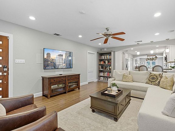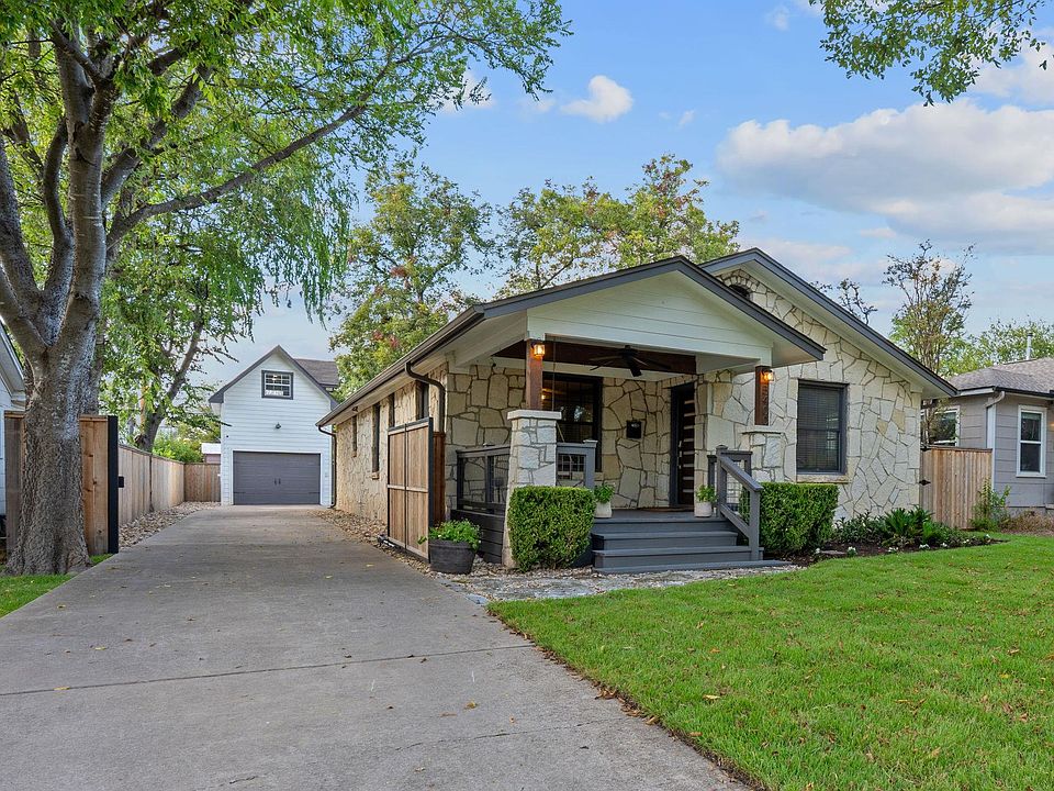 This inviting Brentwood bungalow features a cozy front porch with a swing that sets the tone for a warm and welcoming home. Renovated with care to preserve its historic character while adding modern updates, the layout offers approximately 1,634 square feet in the main house plus a detached 1-car garage with air conditioning and a 251 square foot studio or office space above. Inside, beautiful hardwood floors and an open layout make everyday living and entertaining easy. The gourmet kitchen includes new cabinets, quartz countertops, a cast-iron farmhouse sink, Bosch dual-fuel range and dishwasher, and a dual-zone wine fridge. The spacious primary suite overlooks the backyard and includes a generous bathroom. The guest bathroom was completely remodeled in 2023. The home has been well maintained, with a new roof and HVAC system added in 2023, along with gutters for extra protection. French doors open to a large backyard with fresh sod, a deck for grilling, and a mature pecan tree that provides shade and charm. A new wood fence and automatic driveway gate installed in 2024 offer privacy, security, and convenience with remote access. Located in the heart of Brentwood, this home offers walkability to parks and great restaurants, along with easy access to Mopac, I-35, and the University of Texas. Enjoy all the perks of central Austin living in a beautifully updated space.