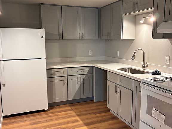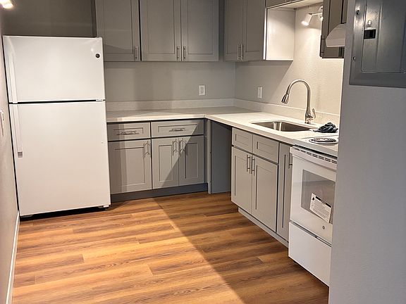 Newly renovated with modern flooring, cabinets, and countertops