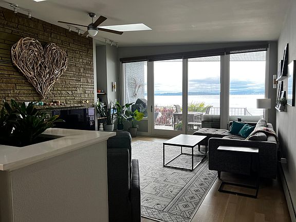 West Seattle Waterfront Home. Beach Drive mid-century modern home, located directly on the water midway between historic Alki Beach Point & Lincoln Park and 5 minutes from West Seattle Junction. Vaulted ceilings, skylights, new hardwood floors, designer finishes, low maintenance yard with new artificial grass and attached garage. Two master suites with ensuite bathrooms and a third bedroom and bathroom. Stunning views from kitchen, living, dining and master suites to Puget Sound and the Olympic Mountains. Watch sea lions and eagles while relaxing on one of two back decks. Friendly residential neighborhood, perfect for walks, runs, bike rides and paddle boarding. Unique opportunity to rent a waterfront home. On and off street parking. No smoking. Renter responsible for utilities. First and last months rent, and security deposit at signing. Pet allowed upon approval, $200 pet fee and $200 increase to security deposit (+$100/$100 for 2nd animal).