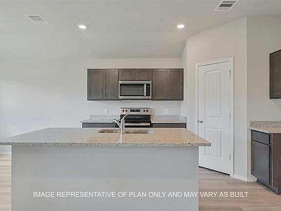 The Lakeway is a single-story, 4-bedroom, 3-bathroom home featuring approximately 2,034 square feet of living space. The large foyer opens to the secondary bedrooms, and bath. Center kitchen includes a breakfast bar and corner pantry. Open concept floor plan boasts spacious combined living room and dining area. The spacious main bedroom, bedroom 1, features an attractive bathroom with walk-in closet. Bedrooms 3 and 4, along with bath 3 are located just off of the Dining Room. The standard covered patio is located off the living room. You’ll enjoy added security in your new D.R. Horton home with our Home is Connected features. Using one central hub that talks to all the devices in your home, you can control the lights, thermostat and locks, all from your cellular device. With D.R. Horton's simple buying process and ten-year limited warranty, there's no reason to wait! (Prices, plans, dimensions, specifications, features, incentives, and availability are subject to change without notice obligation)