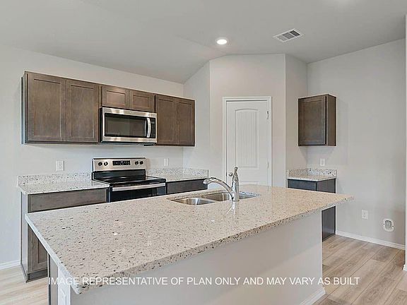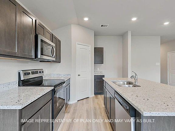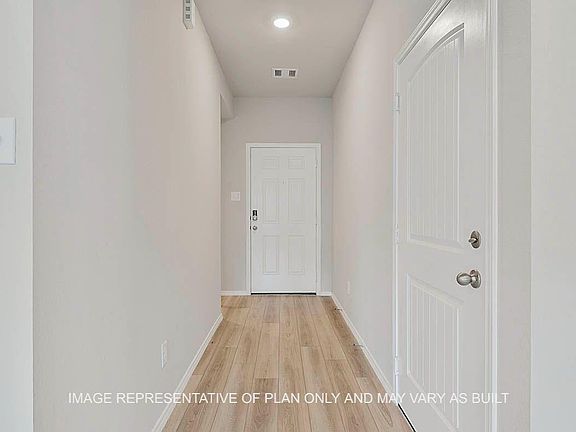 The Lakeway is a single-story, 4-bedroom, 3-bathroom home featuring approximately 2,034 square feet of living space. The large foyer opens to the secondary bedrooms, and bath. Center kitchen includes a breakfast bar and corner pantry. Open concept floor plan boasts spacious combined living room and dining area. The spacious main bedroom, bedroom 1, features an attractive bathroom with walk-in closet. Bedrooms 3 and 4, along with bath 3 are located just off of the Dining Room. The standard covered patio is located off the living room. You’ll enjoy added security in your new D.R. Horton home with our Home is Connected features. Using one central hub that talks to all the devices in your home, you can control the lights, thermostat and locks, all from your cellular device. With D.R. Horton's simple buying process and ten-year limited warranty, there's no reason to wait!