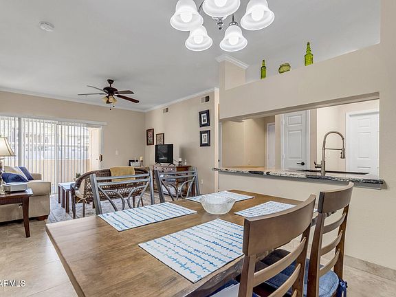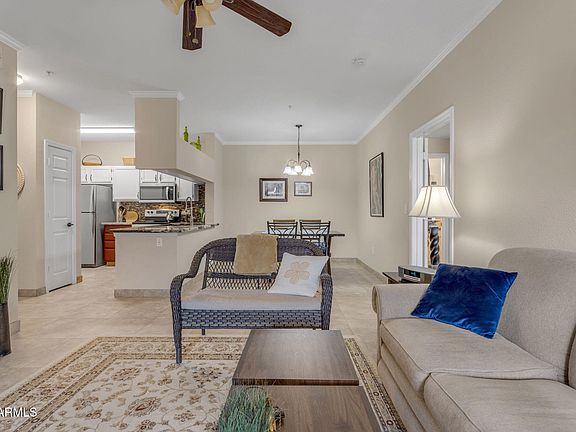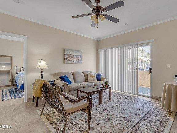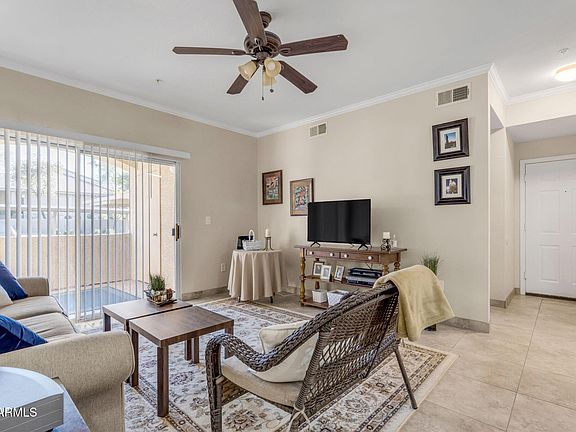 Welcome to this immaculate ground-level end-unit condo located in the prestigious gated community of Red Rox! This beautifully updated 2-bedroom, 2-bathroom residence embodies resort-style living with every detail thoughtfully designed and meticulously maintained. Step inside to discover newer stainless steel appliances complemented by striking slate-peppered granite countertops and a tiled backsplash in the kitchen. Both bathrooms echo this luxurious style with matching granite and tiled shower/tub surrounds. The home features all-tile flooring throughout, extending seamlessly to the outdoor patio, along with newer dual-paned windows that provide energy efficiency and a tranquil atmosphere. The primary suite offers a spacious retreat with a large walk-in closet and en-suite bathroom, while the secondary bedroom and bathroom are equally impressive, perfect for guests or additional family members. This condo is an exceptional choice as a second home or as a solid investment opportunity, with the HOA allowing short-term rentals without minimum lease restrictions. Red Rox offers unparalleled resort-style amenities, including two pools, a spa, fitness and media rooms, a putting green, a serene fountain lagoon, BBQ areas, and walking paths, all set within lush, park-like grounds. Ideally located just 12 minutes from Arizona State University's Tempe Campus, the home also provides quick access to Sky Harbor Airport, the Phoenix Zoo, Desert Botanical Garden, Papago Park hiking trails, baseball venues, and the vibrant dining and shopping of Old Town Scottsdale. Experience the perfect combination of luxury, convenience, and low-maintenance living in this exquisite condo!