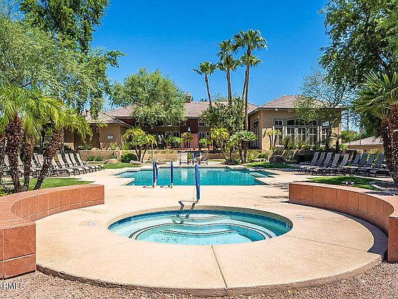 Amazing location! One of the few units overlooking the courtyard, water fountain, & community pool. Enjoy the calming sound of the waterfall from this beautifully upgraded home. Easy access to the luxurious front pool/jacuzzi, lush green landscaped expansive common area, and workout facility. Excellent location near ASU, East valley, downtown employment, freeway access, restaurants, shopping in both Tempe & South Scottsdale. Features include Granite counters, large stainless undermount kitchen sink, beautiful 20-inch porcelain floor tile, upgraded kitchen and bathroom faucets and fixtures. Includes washer, dryer and refrigerator.