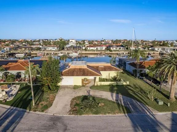 Watch the sunset from your dock every evening here at your fully remodeled dream home! This 1,337 sq ft home is on a WATERFRONT LOT that is SECONDs from the Gulf of Mexico on a DEEP WATER CANAL suitable for very large boats. Gorgeous remodel just completed with beautiful tile flooring throughout and custom cabinetry. Enjoy your evenings with a beautiful sun deck (approximately 24'x12') and boat dock and a large backyard. Gulf Harbors community features a PRIVATE BEACH CLUB (optional membership $200 a year). Come experience paradise at this beautiful waterfront home today! See floor plan in photos. Reach out for tours or with any questions!