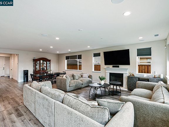 Welcome to 5401 Mountain Ridge Way, a beautifully upgraded home built in 2020 and lovingly maintained by its original owner. This modern, energy-efficient residence features an open-concept layout with stylish vinyl plank flooring throughout the common areas, plush carpet in the bedrooms, and elegant tile in the bathrooms. The spacious living room and dining area are illuminated by recessed lighting, creating a warm and inviting atmosphere. The well-appointed kitchen comes fully equipped with all appliances included, and the washer and dryer are also staying for your convenience and let us not forget the secret underground safe. Designed for smart, sustainable living, the home includes owned solar panels that have provided energy credits most months, along with an EV charger in the garage. Step outside to a fully concreted backyard, perfect for low-maintenance living, entertaining, or relaxing under the California sun. Located in a quiet and desirable Antioch neighborhood near parks, schools, shopping, and commuter routes, Security cameras all around the neighborhood, security officer patrols the neighborhood at night. This turnkey home offers the perfect blend of comfort, style, and efficiency.