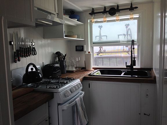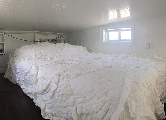 The Tiny Solar House was built on an 18' trailer and towed across America by it's owner. It would work great for someone looking for a mobile lifestyle or someone looking to stay in one place. Living in a tiny house has allowed me to SAVE MONEY which is one of the biggest draws of downsizing! Additionally, I found myself spending much more time outside, enjoying the beautiful weather, scenery, and nature. The tiny house is powered by 1,680 watts of rooftop solar panels and a 750 amp-hour battery bank. It can be plugged into a standard 110 Volt outlet, or 30/50 Amp RV hookups for additional power. I lived 95% of the time in this house WITHOUT plugging in to the grid (it will even generate power on cloudy days)! Think about how much money you'll SAVE on power bills (in addition to rent)! The house was designed to have a modern, minimalist feel. It includes a sleeping loft upstairs that can fit a queen sized mattress and clothing storage units, bathroom with shower and compost toilet, kitchen with double sink, gas stove, and storage, plus a spacious living room with lots of windows and natural light! FEATURES -Double sink and spray faucet -Gas oven and 4-burner gas stove -Butcher block countertops -Full size electric refrigerator/freezer -Custom Edison style LED lighting in kitchen and upstairs loft -Bathroom has shower, compost toilet, and double shelves -On-demand water heater using small propane tank ($10 bucks to refill for 3 months use) -Living room has closet, couch with storage, 2 collapsible desks, ceiling fan, pull-down projector/privacy screen -Upstairs sleeping loft can fit a Queen mattress -All windows have custom blinds (except the 3 covered by the projector screen) -A magnetic screen was installed on the door, so you can have the main door open without worrying about bugs getting in -The solar panels have a 25-year warranty and 30-year lifespan -The batteries have a 5-10 year lifespan. When they die in 5 years or so you'll be able to install that new Tesla battery! I'll also include lots of extra tools, locks, and RV type equipment at no extra charge!