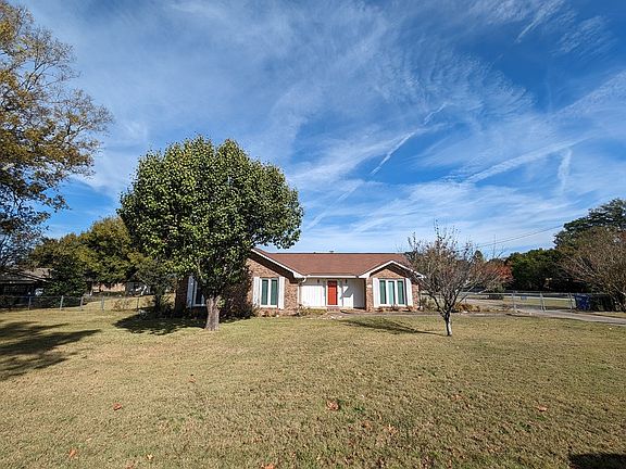 Well kept ranch style home with 3 BR, 2 BA, and 1,931 sq ft. Great room with brick fireplace, vaulted ceiling with exposed beams. Kitchen with subway tile backsplash. Formal dining room. Den/TV room. Wood floors in hallway, foyer, GR, DR, and den. Ceramic tile in both baths. Large master bedroom with walk-in closet. Master bath with separate shower, soaking tub and skylight. Laundry room with attached storage. Huge fenced-in yard with 2 double gates, large barn/workshop w/power, 2-car carport with additional attached storage.