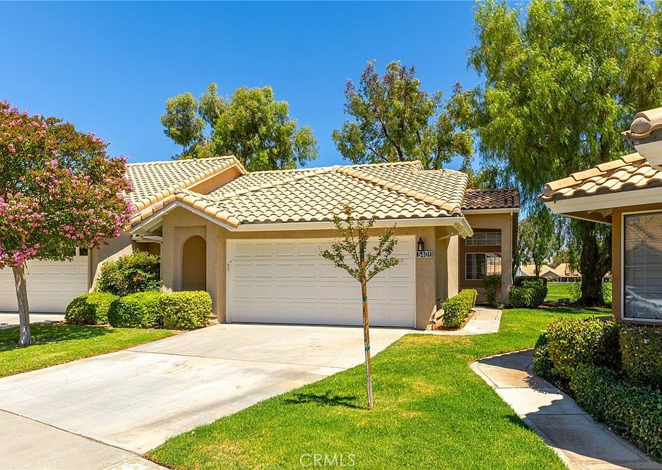 Sun Lakes Country Club, THE Resort Golfing Community for Seniors. This Condo is located in the golf course with a GREAT VIEW including one of the many lakes. Perfect size for a couple that are looking to downsize but still have 2 bedrooms, 2 full bathrooms and a large family room with a lovely fireplace. The many windows make for a bright and cheery living space. Bonus.... end unit with only one connected neighbor. Inside has been painted and new flooring added. It is Move-in Ready! Sun Lakes Country Club is located near shopping, entertainment and restaurants with Morongo Casino and Desert Hills Premium Shopping Mall 15 minutes east on highway 10. Drive another 10 minutes and you can enjoy brunch in Palm Springs. Some of the amenities in Sun Lakes are: Championship Golf Course, Executive Golf Course (both 18 holes), 3 Club Houses, 3 Gyms, Restaurant & Lounge, Tennis, Swimming (inside & outside), Bocce Ball, Pickle Ball / Paddle Ball and many, many clubs to join. You can join RV travel club, gardening club, cards & games galore! You can sit in the beautiful library and read by the fireplace if you need a quite space.