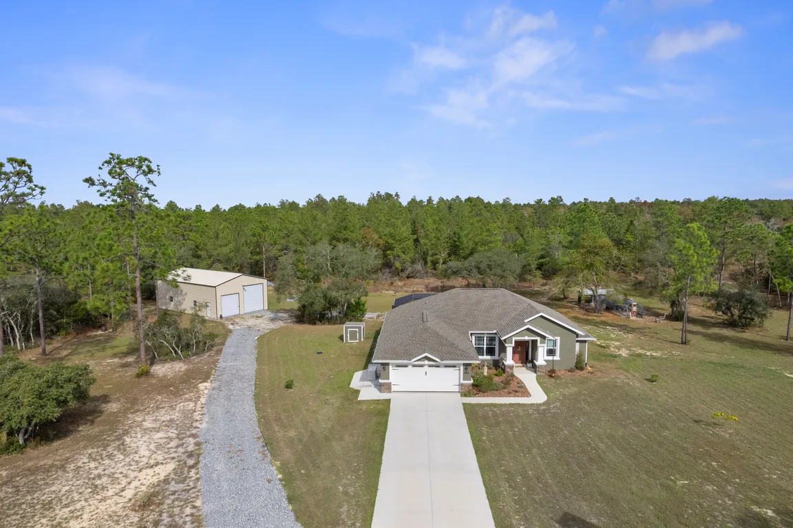 Welcome to this beautifully designed 2024 custom-built home, perfectly situated on 2.62 private and fully fenced acres in Dunnellon. Thoughtfully crafted for comfort, functionality, and modern living, this property offers an exceptional blend of indoor luxury and outdoor convenience. Inside, you'll find a spacious split-floor plan featuring 3 bedrooms, 2 bathrooms, ...