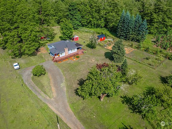 Beautiful 1 level living on flat acreage with pastures, all less than 10 minutes to town! The long road leading to circular drive overlooks the 2 fenced pastures, fruit trees, fenced garden area, multiple outbuildings, & huge deck that wraps around to a covered area. Inside you will find tastefully updated laminate flooring throughout most of the home with bright windows, a warm pellet stove, a convenient office nook, Corian countertops on freshly painted kitchen cabinetry & granite in the updated bathrooms. The primary boasts a walk in closet & large en suite with built ins & exterior access. One bedroom even features its own sink vanity. Generator & all appliances stay, previous approval to expand septic possibilities as well- View today!