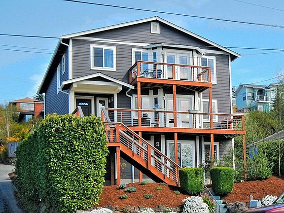 An open floor plan and generously sized rooms await you in this gorgeous Seaview home! With almost 4,000 total sqft this home boasts: 2 fireplaces, french doors, 4 large bedrooms, 3 full bathrooms, and a huge 2 car garage with level entry into the main level. Designer granite, slate, and marble. Gorgeous Sunsets from all 3 floors with 2 decks for entertaining. Finished lower level is the perfect rec room or future ADU option! Fantastic W. Seattle location close to great dining, shops and parks.