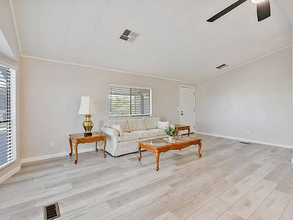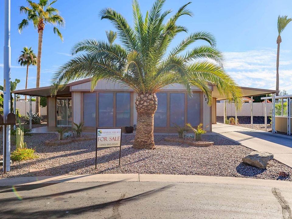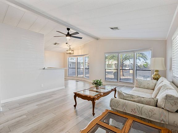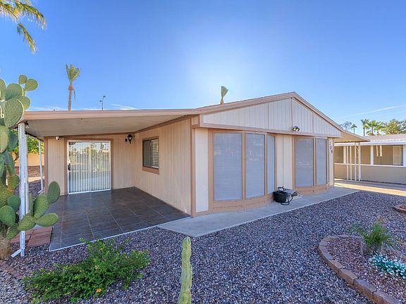 Step inside this stunningly updated home and fall in love with its bright, open design and modern touches throughout! Featuring new flooring, fresh paint, updated lighting, and beautiful wood cabinetry, this home combines comfort with style.The spacious kitchen boasts stainless steel appliances, sleek countertops, and plenty of storage perfect for cooking and entertaining. The living area offers large windows that fill the space with natural light, creating a warm and inviting home. The primary suite comes with an private ensuite bath and the second bedroom would make a great office! The enclosed Arizona room leads to the private backyard oasis. Come view this beautiful home! Exterior Paint-2024 |Partial Remodel- 2023 |Water Heater- 2018 | A/C- 2016 Experience the Thesman Lifestyle, we are an active 55 plus land lease community where luxury meets affordability. For over 40 years we have set the standard with world class amenities and year-round activities. Our community features a gated community, with a beautiful clubhouse including ballroom, library with computers and individual rooms for cards, billiards, arts & crafts and fitness center. Enjoy outdoor amenities heated pool & spa, BBQ area, pet park, sport courts for shuffleboard. Our activities director assures a full calendar of social and recreation events. Our shuttle bus makes it easy and convenient to attend sporting and special events, plus local shopping. Whether you want to relax or stay active our vibrant communities offer everything you need to enjoy life to the fullest. Start living the Thesman Lifestyle today!