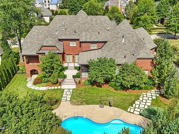 Some homes simply cannot be captured in photos, and this is one of them. With over 10,000 square feet of carefully designed living space, every inch of this estate speaks to craftsmanship, luxury, and attention to detail you just do not see anymore. It is the kind of property you have to walk through in person to truly appreciate. Set on one of the most private, secluded lots in Spring Farm Place, the home welcomes you with a stunning entry foyer and unfolds into a custom walnut library, a formal living room with reclaimed chestnut floors and historic beams from the Man O' War and War Admiral barn, and a chef's kitchen that opens into a massive great room with fireplace and breakfast area. The first-floor primary suite is its own retreat, complete with a his and hers steam shower, separate closets, and multiple wings of the bathroom. The primary even has its own private porch overlooking the backyard and pool. Upstairs, you will find four oversized bedrooms, each with its own bath, some with hand-painted murals that add one-of-a-kind charm. The lower level will not disappoint: a spacious walk-out basement with soaring ceilings, in-home theatre, wet bar, office, a full bath and a second great room. Best of all, it opens directly to your backyard oasis complete with a covered porch, in-ground pool, luxurious in-ground hot tub, and play area, all surrounded by mature trees for maximum privacy. Custom hand-forged architectural metalwork can be found throughout the home, all created by Kentucky's own Meynard Studios, an award-winning husband and wife blacksmith team known for their extraordinary craftsmanship. Modern efficiency is built in with a Geo-Thermal system, tankless water heaters, spray foam insulation, and setup for three EV charging stations in the garage. A three-car garage and generous parking court round out the home. This property is truly one of a kind. Every detail was considered, and no expense was spared. If you are looking for a home that combines luxury, privacy, and character in Louisville's premier neighborhood, this is it.