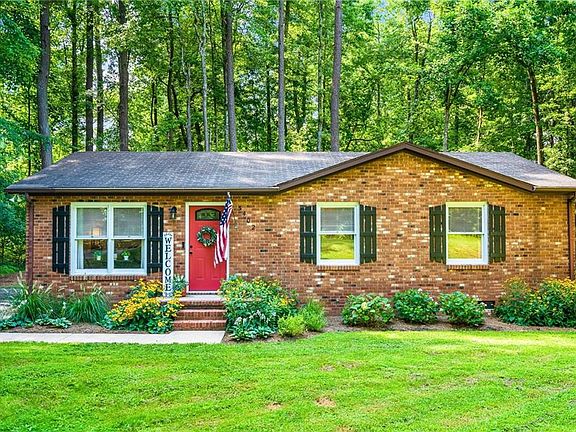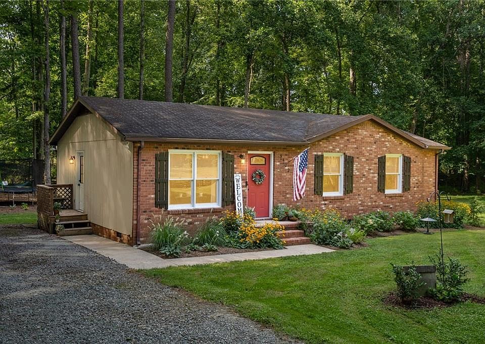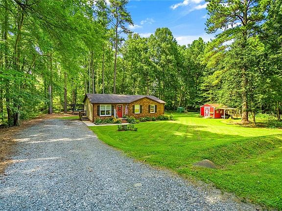 Welcome to your private oasis! This charming brick ranch home sits on a spacious 2.12-acre lot enveloped by beautiful landscaping. With new flooring in 2021 and stunning updates in the kitchen, including new appliances and a tile backsplash, this residence seamlessly blends modern style with classic elegance. A red barn-style storage building adds to the charm. With 3 bedrooms, 1.5 baths, and a serene wooded backdrop on all sides, this home is a tranquil retreat. Don't miss the opportunity to own this captivating property!