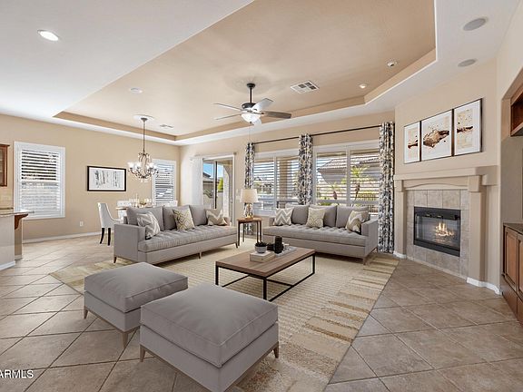 Welcome to this stunning home in the exclusive gated community of Trilogy, ideally tucked away in a private cul-de-sac. This residence is loaded with upgrades including granite counters, premium cabinetry, tile & wood flooring, wood shutters, custom draperies, custom built-ins & surround system inside & out. The owners suite boasts a large walk in closet & updated owners bathroom. The backyard is a true retreat featuring turf, pavers, large covered patio & outdoor kitchen with gas grill. Additional highlights include epoxy garage floors, soft water system, reverse osmosis & a separate bonus/craft room. 2 New A/C units, New Water Heater, Freshly painted exterior, Added insulation at attic. Remodeled bathrooms. For more information, click here: Located near shopping & restaurants, this home blends elegance, comfort, and resort-style living. Trilogy Golf Club at Power Ranch offers an 18-hole, par-71 championship course designed by Dick Bailey, stretching over 6,900 yards through the scenic Queen Creek wash. Residents can also enjoy amenities like a driving range, putting green, bocce ball courts, a state-of-the-art fitness center, pickleball and the Slate Bistro & Bar for dining and socializing with new and old friends. Don't miss your chance to own in the premier active adult community of Trilogy today!