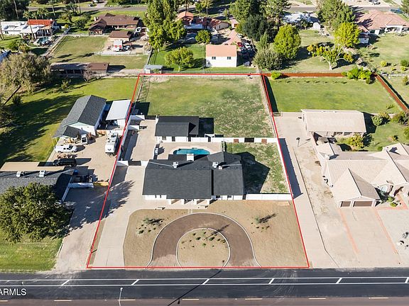 UNICORN ALERT! Amazing mountain views and mature trees meet modern luxury on this stunning home with acreage and no HOA! Fully remodeled from the ground up with new electrical, plumbing, and roof, this home blends style and serenity. Enjoy a sparkling pool, high-end appliances, and an open, light-filled layout. Primary suite offers a sitting area with a second fireplace and separate access to the pool. Outside, a huge pasture surrounded by mature trees offers peace and privacy. The expansive workshop with two large rooms and storage is perfect for hobbies or business. Ideal for horses or farm animals, this property delivers space, comfort, and connection. Just minutes from the 202 freeway for effortless access to anywhere in the Valley while feeling like you are out in the country.