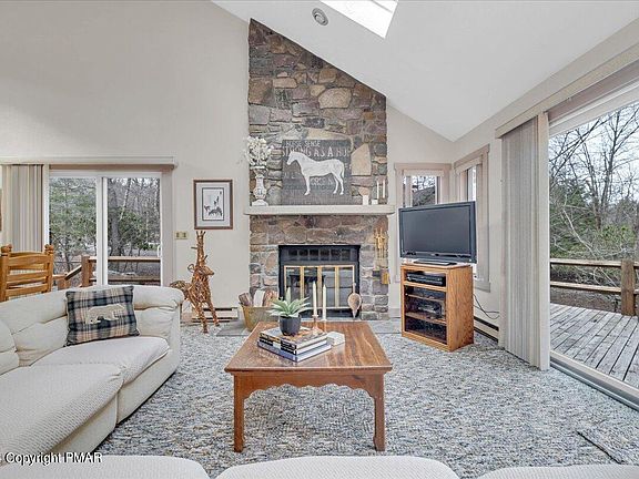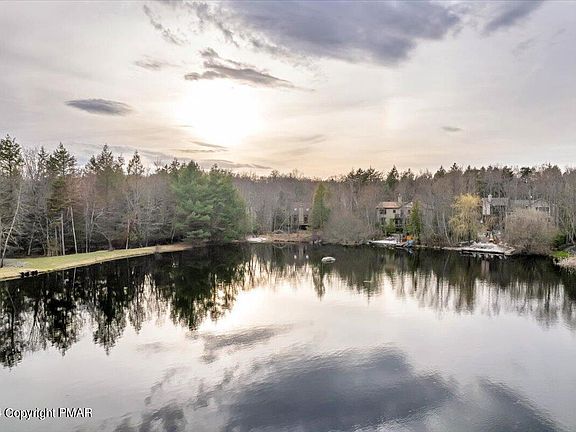Enjoy Peace and Tranquility on GOLDEN POND in the Pocono Mountains. Lake Naomi is a premiere recreational vacation home lake community. This Contemporary home is Nestled on a wooded lot with DIRECT access to POND. A short stroll down the woodland TRAIL leads you to a sandy beach where you can enjoy watching the birdlife on the QUIET POND. 3 bedrooms and 2.5 baths, Convenient FIRST FLOOR Primary Bedroom is over-sized with an office work space, an ensuite bathroom. Kitchen, Dining and Living rooms offer Spacious OPEN floorplan with Cathedral ceiling, wood burning STONE fireplace. Home comes fully FURNSIHED, most of the home is Freshly Painted. Upstairs you'll find TWO bright bedrooms, a full BATH, a LOFT for additional guests or a hang out space. Large wraparound deck, perfect