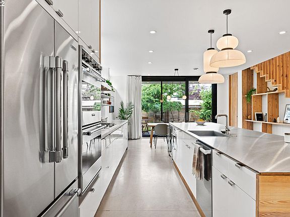 OFFER DEADLINE Tuesday 6/14 5pm.Open & airy modern home with stunning finishes for the design-conscious owner. No expense spared on top-of-the-line materials & energy-efficient design. Radiant heat concrete floors,high ceilings,reclaimed doug fir floors & 9 ft pivot doors.Clerestory windows,skylights,triple pane European windows & sliding doors for light-filled living. Professionally landscaped,beautiful rain garden.Solar panels.HES 10/10.Low energy costs. Walk to dining,cafes,grocery,parks. [Home Energy Score = 10. HES Report at https://rpt.greenbuildingregistry.com/hes/OR10202233]