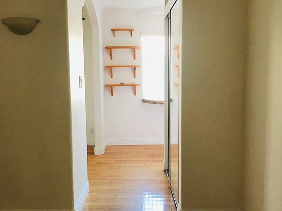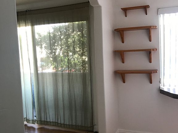 Unfurnished, ground floor apartment, a few minutes walk from Ventura Blvd., where there are coffee shops, grocery stores, restaurants, bars, etc. Hardwood floors and artistic arch wall that splits the studio into two sections: the living room area and the bedroom area. The kitchen has stone tiles, beautiful marble countertops, dishwasher, oven, electric stove, microwave, and refrigerator. There is a balcony with beautiful trees all around that provide shade as well as elegance.