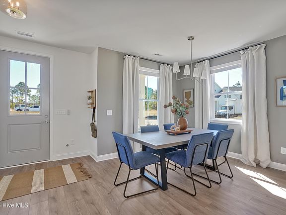 The Haywood, built by New Leaf Builders is the quintessential 3 bedroom 2 and a half bath home. The Haywood features a owner's suite tucked away upstairs, which gives the main living spaces on the first floor an exceptionally expansive and open feel. This home lives larger than it's square footage. You'll enjoy ample privacy from your family room with an ideal location at the rear of the home with easy access from your back entryway. An open concept kitchen rests between your living and dining rooms, allowing for connection with loved ones plus easy access to the heart of your home from all living areas on the main floor. Riverlights is a new home community surrounded by the coast and Cape Fear River, where nature is part your everyday routine. With easy access to the Cape Fear River, the intercoastal waterways, a family-friendly pool, a new dog park, gym and a 38-acre lake, you can kayak, paddleboard or stroll along the community dock any time of day. Enjoy the three-mile loop around the lake and scenic nature trails that weave throughout Riverlights. Conveniently located minutes to Historic downtown Wilmington, beaches, restaurants and shopping the location of Riverlights is unbeatable.