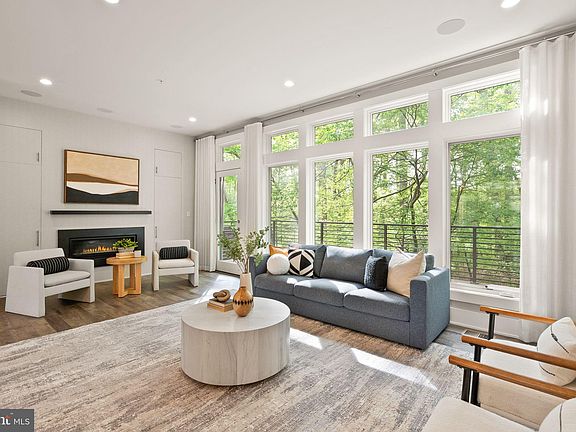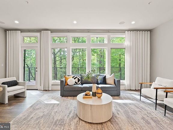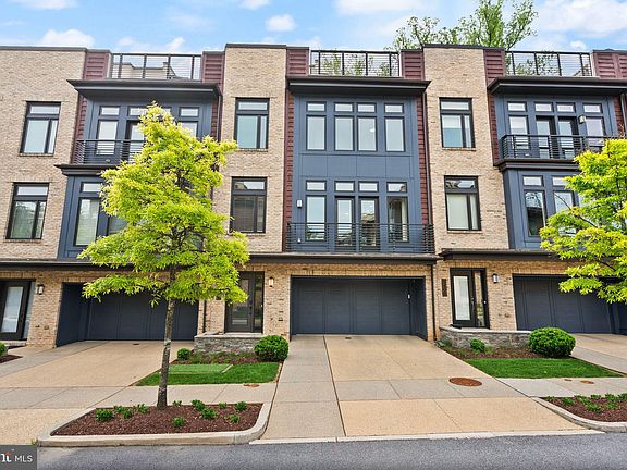 Welcome home to the pinnacle of luxury living at Grosvenor Heights! This upgraded Harrison Model is among the most exceptional residences in Grosvenor Heights, offering more than 3,100 square feet of refined living space across four levels. Every detail has been curated to deliver the ultimate in luxury, technology, and design. On the entry level, a wide foyer welcomes you into a versatile bedroom suite with full bath, a custom mudroom with built-ins, and direct access to the two-car garage. From here, step into the private, cedar-fenced backyard lined with vibrant, year-round turf and framed by wooded views. Head up to the main level which is defined by soaring 10-foot ceilings, wide-plank floors, and walls of windows that flood the space with natural light. The gourmet kitchen features an oversized quartz island, paneled Sub-Zero refrigerator, Thermador cooking suite, Bosch dishwasher, and a striking marble herringbone backsplash. A dedicated coffee bar and abundant pull-out pantry storage enhance both function and elegance. The living room showcases a sleek gas fireplace surrounded by bespoke built-ins, while in-ceiling Bowers & Wilkins speakers pair with the fully integrated Savant home automation system for a seamless audio and video experience throughout every TV and speaker in the home. Extending the living space outdoors, a large balcony with gas line for a grill easily accommodates a dining table and chairs and overlooks serene treetop views. Upstairs, the bedroom level offers a tranquil Owner’s Suite with custom closets featuring stunning built-ins, a spa-inspired bath with dual vanities and frameless glass shower, and peaceful wooded views. Two additional bedrooms, a full bath with tub, and a convenient laundry room complete this level. The rooftop terrace crowns the home with the ultimate outdoor retreat—boasting a retractable awning, outdoor speakers, mounted TV, refrigerator, and wet bar—perfect for both large gatherings and private evenings under the stars. Additional luxuries include a private elevator to all four levels, a modern open-riser staircase with metal railings, multiple indoor-outdoor spaces, and thoughtful upgrades throughout. Perfectly sited on one of the most desirable rows backing to trees, this residence represents the pinnacle of Grosvenor Heights living—offering unmatched privacy, refined style, and effortless convenience, just minutes from Metro, Wildwood Shopping Center, downtown Bethesda, and major commuter routes.