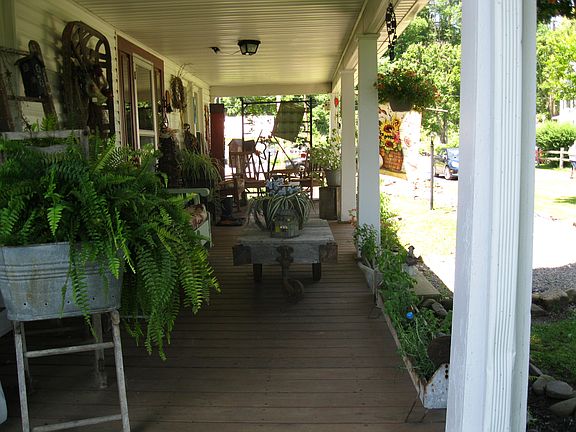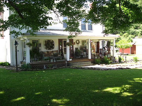 This is a picturesque circa 1920 home is located on 1 acre of flat land This home would make a lovely family home or a Bed and Breakfast. The grounds have beautiful trees, fish pond and well manacured landscaping. The living room has a stricking propane fireplace. New tongue and groove pine ceilings have been done in the living room, dining room and den. The staircase has been redone with oak and pine wood. Many rooms have been re-painted soft colors. This home features high ceilings, and hardwood floors. The outside has vinyl siding, and a covered front porch with mountain views. Also, a new generac generator was just added, as well as an updated septic tank. This home is furnished with antique and primitive furnishings. If interested these can be purchased separately.Great parking space.