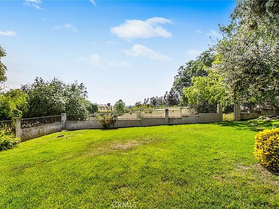It sets back from the street for privacy with plenty of parking and has a 3 car garage. It is set on 3/4 acres with a large fence back yard. Beyond that is horse property that extends to the bridle trails which are featured in Alta Loma. There is a tile roof with solar panels.