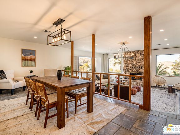 ATTENTION Buyers, The Koi pond has been evaluated and confirmed it can be converted to a pool. We have a new bid in hand. Discover Ridge Oasis, a stunning 3-bedroom, 2.5-bath fully-furnished retreat set against the hills of Yucca Valley's serene Country Club neighborhood. Perfect as a primary residence, a vacation escape, or a high-potential investment, this fully furnished home blends desert serenity with modern elegance, just minutes from Joshua Tree National Park. Inside, the open floor plan is bright and spacious, with high ceilings and clean modern finishes. The centerpiece is a gourmet kitchen, outfitted with dual islands, two sinks, and premium appliances; it's a chef's dream, perfect for family gatherings or entertaining. Enjoy morning coffee at the breakfast nook or host dinner parties in the elegant dining room, with seating for eight, complete with a cozy reading corner overlooking the expansive living area. The living room, bathed in natural light, offers breathtaking desert views through its expansive windows. Avast stone fireplace completes the space, creating a seamless connection to nature. The primary suite is a true haven, offering a sitting area, a spa-inspired ensuite with dual vanities, and walk-out doors to a serene patio - perfect for starlit evenings. Two guest bedrooms share a spacious bathroom with dual zones for privacy. A powder room and full laundry room round out the interior layout. Outside, the gated property invites exploration. Wonder paths lined with palm and Joshua trees, relax by the exotic Japanese Koi pond (which includes complete pool infrastructure for conversion), or stargaze from the upper deck's sweeping views. The hot tub and spacious entertainment patio make it easy to host and unwind. The home also comes with a three-car garage, a large custom shed, and an upgraded solar system (keeping utility costs low).Just a short drive from local dining, shopping, and hiking, Ridge Oasis offers seclusion and accessibility. Schedule your tour today to claim this desert masterpiece as your forever home!