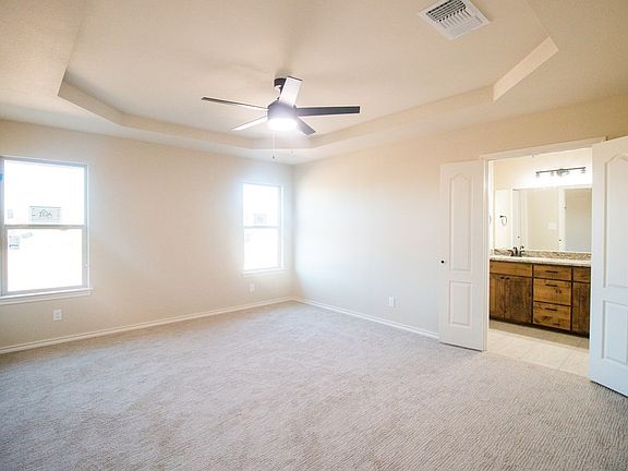 This stunning home in the sought-after Twin Oaks community features 3 bedrooms and 2 bathrooms with a warm, inviting layout. The spacious kitchen flows effortlessly into the dining area, making it perfect for hosting family and friends. Stylish finishes and a cozy stone fireplace add charm and comfort throughout. Landscaping will be complete with sprinkler system and grass.
