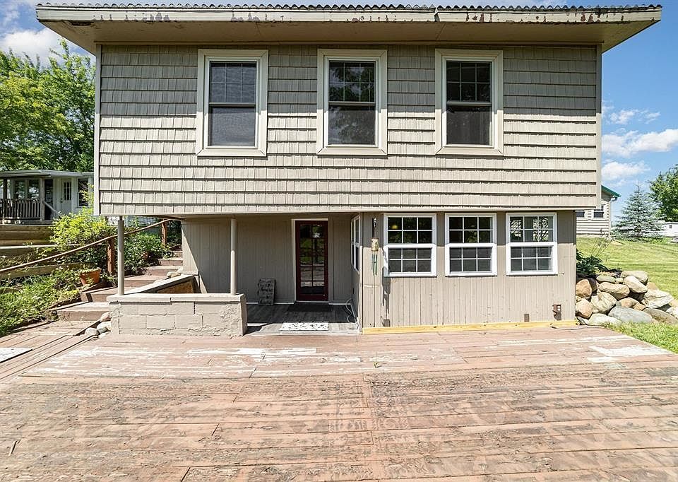 Enjoy 100' of waterfront on the all-sports Wixom Lake, located on an extra wide canal just off the main lake and around the bend from Pontoon Alley. Prepare for lake life when water levels return to normal with this truly unique property! This historic cottage, one of the originals built on the lake, sits on a secluded 0.6-acre lot with trees and a winding driveway. While maintaining its rustic charm, the cottage also offers modern conveniences. Originally a vertical log structure, it now features vinyl shake siding and a composite roof. The quaint covered porch is the perfect spot to relax and enjoy the views. The cottage is split into two levels. The main floor includes a living room and a bedroom running the full length of the cottage offering a view of the future lake. There is also a small bedroom with a potential third bedroom, office, or large closet. A "water closet" (toilet-only room) is also on this level. Downstairs, the walk-out basement is filled with natural light and houses the kitchen and dining area. The rustic, original kitchen features an antique stove, sink, and butcher block counter. There is a full bath with a shower on this level, and you can walk out to a lakeside patio. The 24x40 garage could easily be converted into a second living space. It is vinyl-sided with a concrete approach, has radiant in-floor heat, natural gas space heaters, and is finished with knotty pine tongue-and-groove. Additional features include 220V power, air hose hookups, a sound system with indoor and outdoor speakers, and an outdoor-access bathroom with tiled floors, shower, and washer and dryer. Other features of this property include a 5" well, a storage shed with electric, a garden shed, and a charming guest house with electric, reclaimed wood, and a tin ceiling. Please note that some seawall and deck repairs will be needed. Visit the Four Lakes Task Force website to learn more about the upcoming assessment and completion of the dam repairs.