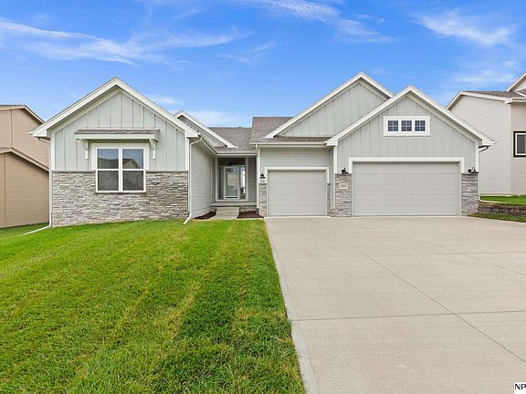 Open Saturday 1-3. Brand-new ranch home blending style, comfort, and convenience! This 5-bedroom, 3-bath beauty features an open floor plan with a stunning family room highlighted by large windows, a statement fireplace, and floating shelves. The kitchen impresses with a center island, gas range with stainless hood, and a walk-in pantry with handy Costco door for easy grocery unloading. The spacious primary suite offers a designer ceiling, dual sinks, walk-in shower, and a huge walk-in closet. Downstairs, enjoy a finished basement with two additional bedrooms, full bath, and plenty of storage. Oversized 3-car garage and large closets throughout. Perfect combination of function and modern elegance!