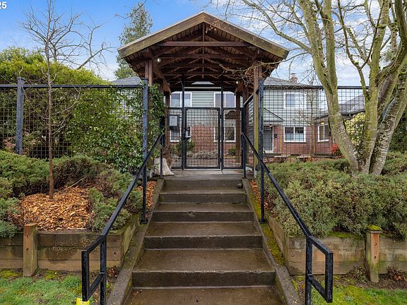 This charming end-unit condo packs a surprising punch with its bright, southeast-facing orientation and thoughtful layout that masterfully blends 1940s character with modern convenience.Step inside to discover warm oak hardwood floors that run throughout and a seamless flow between living spaces. The smartly-designed kitchen with beautiful wood cabinetry makes excellent use of space. A window above the sink brings in natural light, while the gas stove and newer dishwasher complete this functional cooking space. A period bathroom showcases updated hex tile flooring, subway tile shower, and refinished vintage tub honoring the home's historic roots. Modern conveniences include in-unit laundry with newer washer and dryer (included) and a dedicated basement storage unit for seasonal items.Unlike typical condos, this gem lives like a single-family home—its private fenced backyard features a flagstone patio, evergreen plants, and raised garden bed creating the perfect outdoor retreat.Mature landscaping surrounds the secure 1940s courtyard (with additional improvements on the horizon), while the overall well-maintained condition, including updated plumbing, demonstrates the consistent care and attention of the property. HOA dues provide excellent value by covering water, gas, garbage, and building maintenance.Located in the heart of NE, you'll be just moments from some of the city's best dining, shopping, and green spaces along Killingsworth and Alberta Arts District. This pocket-sized condo offers all the peacefulness of home in an efficient, easy-to-love package.