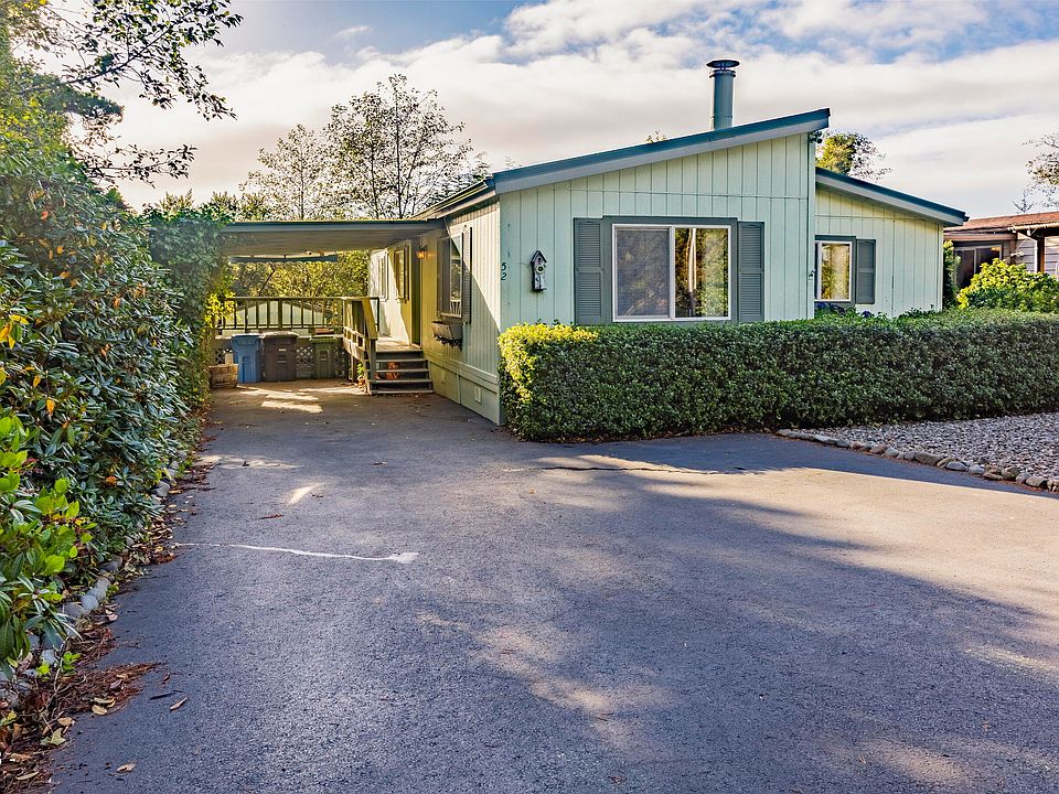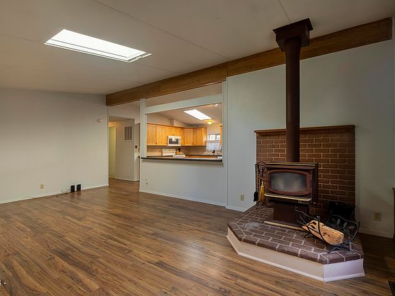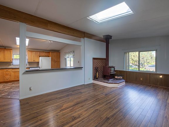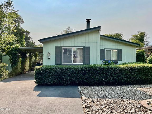 Located in Waldport's 55+ Driftwood Park Community, across the Hwy from Driftwood Beach State Park! Unique, private setting at the end of a road with mature trees and greenery! The Covered Entry off the carport opens into the living room, featuring a cozy wood stove and skylights that allow ample natural light. The living room connects to the updated dine-in kitchen. The large breakfast bar and open layout are great for entertaining. The primary bedroom has a full ensuite bathroom. Outside, A shed and small workshop are both connected to power and provide extra storage and hobby space! Park approval required. Current space rent is $680 per month and covers septic, partial water ($25 fee/month), garbage, and basic cable.