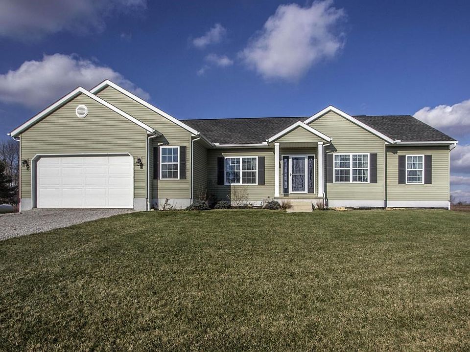 This outstanding one story custom home nestled on of 2.558 tranquil acres with lush meadowland offering over 2,400 square feet of pristine living space and a full with walk-up basement and an oversized two car garage is a rare find! The open design features nine foot ceilings, a beautiful island kitchen opening to the large great room, a formal dining room, den/living room, a deluxe owner suite plus three additional bedrooms, a second full bath and half bath. The rear yard is fenced and features a large, tiered patio perfect for outdoor entertaining. This impressive home is country living at it's best and approximately twenty minutes to Polaris Parkway.