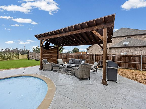 Step outside and the backyard instantly becomes everyone’s favorite spot. The play pool and attached spa are ready for everything from a holiday polar plunge to an evening soak after a long day. The artificial turf keeps things looking clean and low-maintenance, and the pergola gives you a place to enjoy the outdoors no matter the time of year.