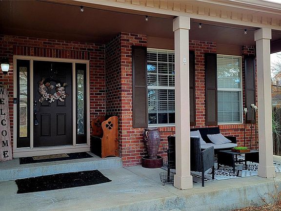 Back on the market through no fault of the Seller! FREE AND CLEAR SOLAR PANELS! Seller is offering $7500.00 for carpet allowance or closing costs! Showings will resume April 9th. Welcome to this stunning Saddle Rock Ridge home, perfectly situated on a corner lot with a charming front porch. Thoughtful custom touches elevate every space, from the formal living and dining rooms with custom shelving off the foyer to the bright and airy open floor plan at the rear. Hardwood floors and abundant natural light create an inviting atmosphere. The elegant family room features a vaulted ceiling and a cozy fireplace with built-in shelving. The well-appointed laundry room includes custom shelving, a utility sink, and a convenient dog door.