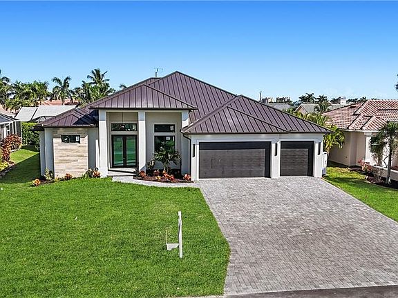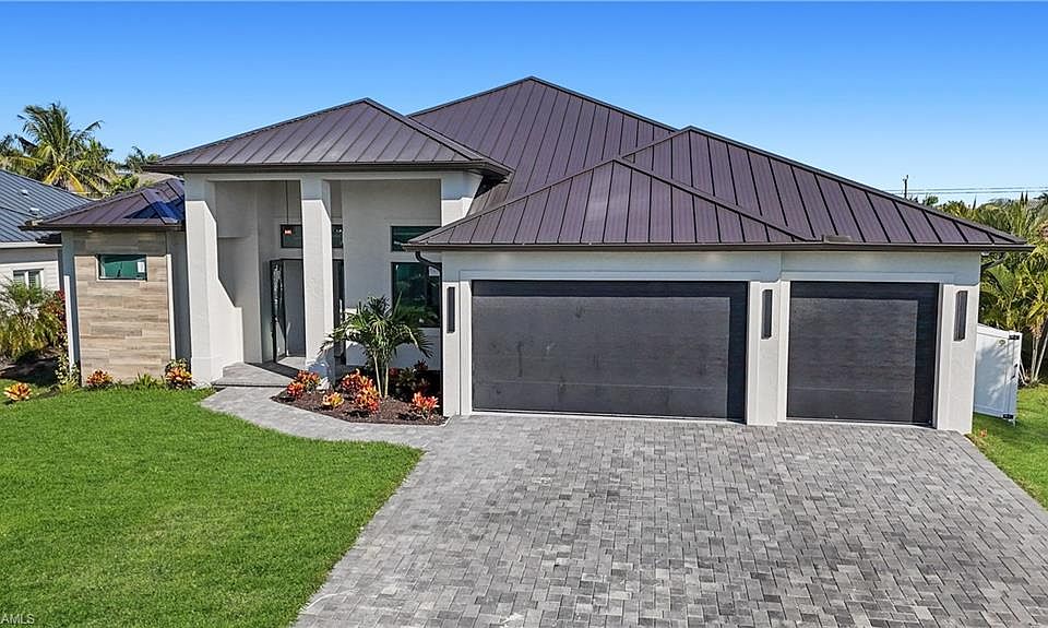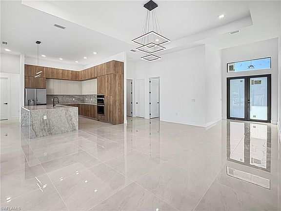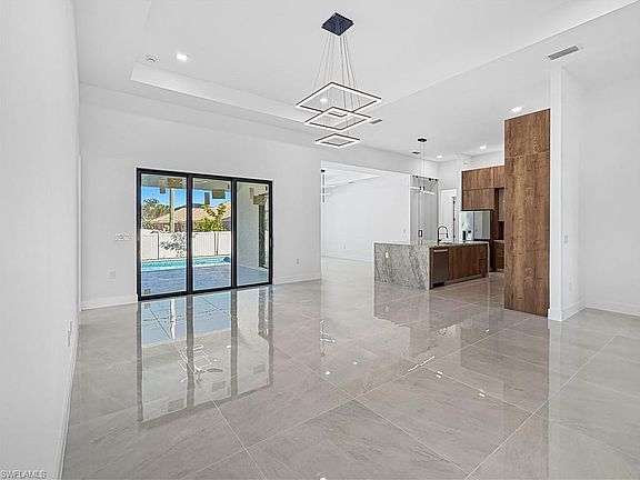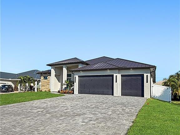 This stunning new residence perfectly blends modern elegance, comfort, and sophistication. Designed with impeccable attention to detail, this home offers expansive open spaces, high ceilings, and exquisite finishes that create a luxurious yet inviting atmosphere. Featuring 4 spacious bedrooms, 3 elegant bathrooms, and a 3-car garage, every inch of this home has been crafted to combine functionality with style. The open-concept floor plan seamlessly connects the living, dining, and kitchen areas, enhanced by large glass doors that flood the space with natural light and create a beautiful flow to the outdoor living area. The gourmet kitchen is the heart of the home — equipped with premium cabinetry, a large central island, and an elegant layout perfect for entertaining or family gatherings. The master suite offers a serene retreat with a spa-like bathroom, a walk-in shower, and a generous walk-in closet. Step outside to a spacious lanai that invites you to relax or entertain, with plenty of room to design your dream outdoor kitchen and pool oasis. Nestled in one of Cape Coral’s most desirable neighborhoods, this residence provides the ideal combination of privacy, luxury, and the true essence of Florida living.