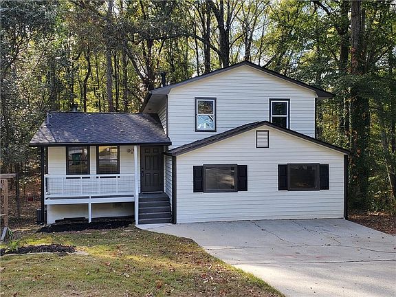 FABULOUS 5 BR/3 FULL Bath is recently renovated and ready for you to call it home! No HOA and PEACE OF MIND knowing that you have a new roof, new HVAC, new stainless-steel appliances, new luxury granite, vinyl wood-look flooring, ceiling fans in each BR as well as the living room and kitchen, freshly painted inside & out. Rocking chair front porch and secluded back deck are perfect spots to sip your coffee and enjoy the peaceful surroundings in the private cul-de-sac. Located in a quiet community, this home has lovely maintenance free vinyl flooring with wood-look, fireside family room, and kitchen/breakfast area combination. The kitchen boasts brand new soft close white shaker cabinetry, luxury leathered "Fantasy Brown" quartzite countertops in the kitchen and all bathrooms, plenty of storage, and an eat-in area with open concept. The Owner's Suite will become your tranquil retreat from everyday life featuring a tiled shower. You'll love this updated look with all black fixtures throughout. Upstairs you will find the owner's suite and 2 additional bedrooms, each with ample closet space, and 2 full bathrooms. Downstairs you will find 2 more bedrooms and another FULL Bath. The back deck overlooks the large, partially fenced, private backyard.........perfect for entertaining with over a half-acre of land. BRAND NEW 8' X 12' UTILITY/STORAGE BUILDING in matching colors! Public transportation within walking distance! Home is conveniently located inside the heart of Stone Mountain with easy access to the interstate.