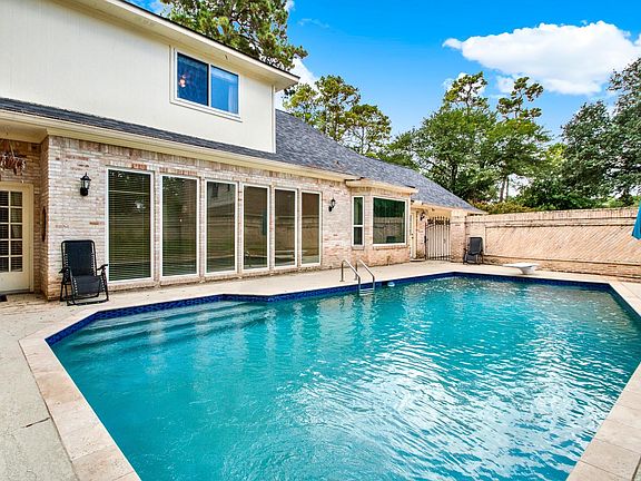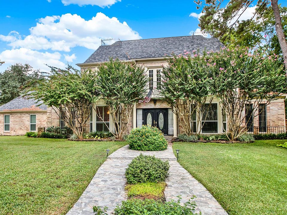 Beautifully maintained home in Huntwick, an established neighborhood filled with mature trees and timeless charm. Situated on a quiet, four-home cul-de-sac, this home features a whole-home Generac generator, 3-year-old roof, and PEX re-pipe. Enjoy a fully refurbished pool with diving board, and cobblestone patio–your own backyard oasis enclosed by a brick wall with iron gates for added privacy. Inside, a formal living, dining room and a wet bar make entertaining a breeze. Highlights include granite counters, Strauss crystal chandeliers, refinished herringbone floors, and a claw-foot tub on a granite slab. Nearly all windows are double-paned, with upgraded lighting and recent AC service. LOW TAXES, LOW HOA! Don’t miss this one!